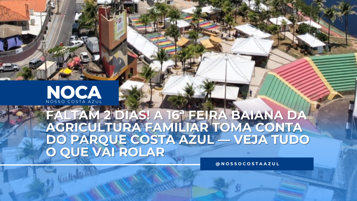 O Parque Costa Azul já está de cara nova. Barracas coloridas sendo erguidas, palcos tomando forma, equipes circulando sem parar… tudo isso porque, nesta quarta-feira (10), começa a 16ª Feira Baiana da Agricultura Familiar e Economia Solidária, um dos eventos mais aguardados do ano em Salvador.